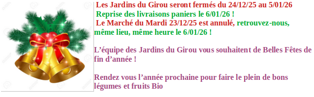 récupération des paniers : mercredis de 9h à 11h30 et de 13h30 à 17h30